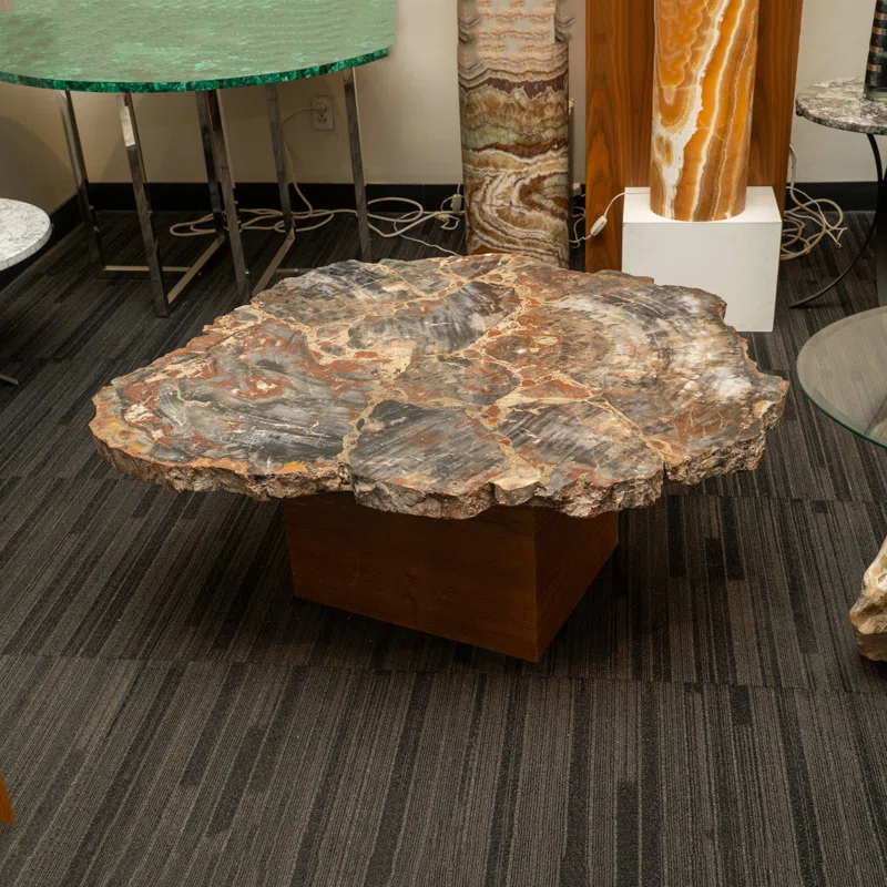 - Crafted with top-quality, handmade natural petrified wood, this versatile table can serve as a guest, coffee, center, or side table, and can also be removed from its stand for a decorative display. A perfect addition to any space with a touch of sophistication and beauty. (Base Not Included)